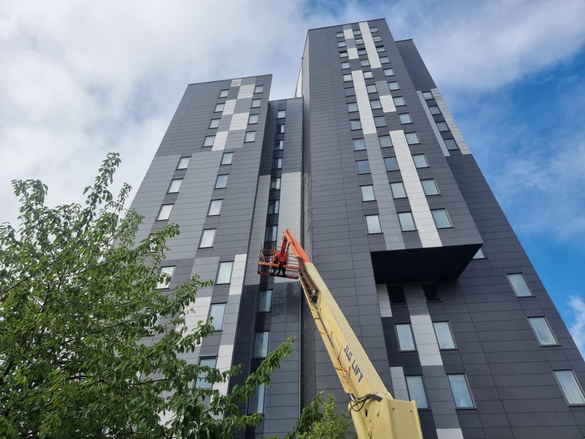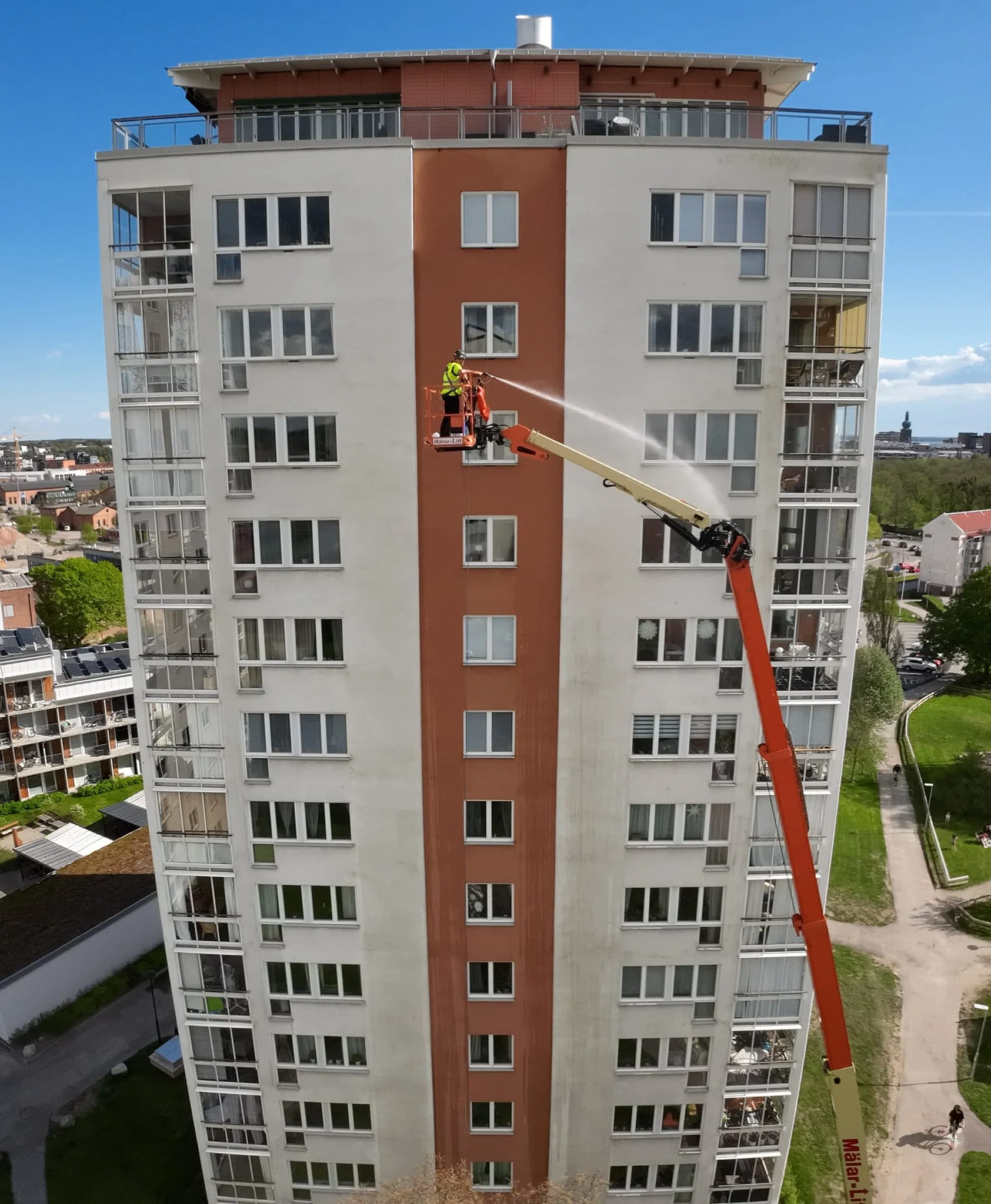 Vårt team har lång erfarenhet inom fasadtvätt och service.
