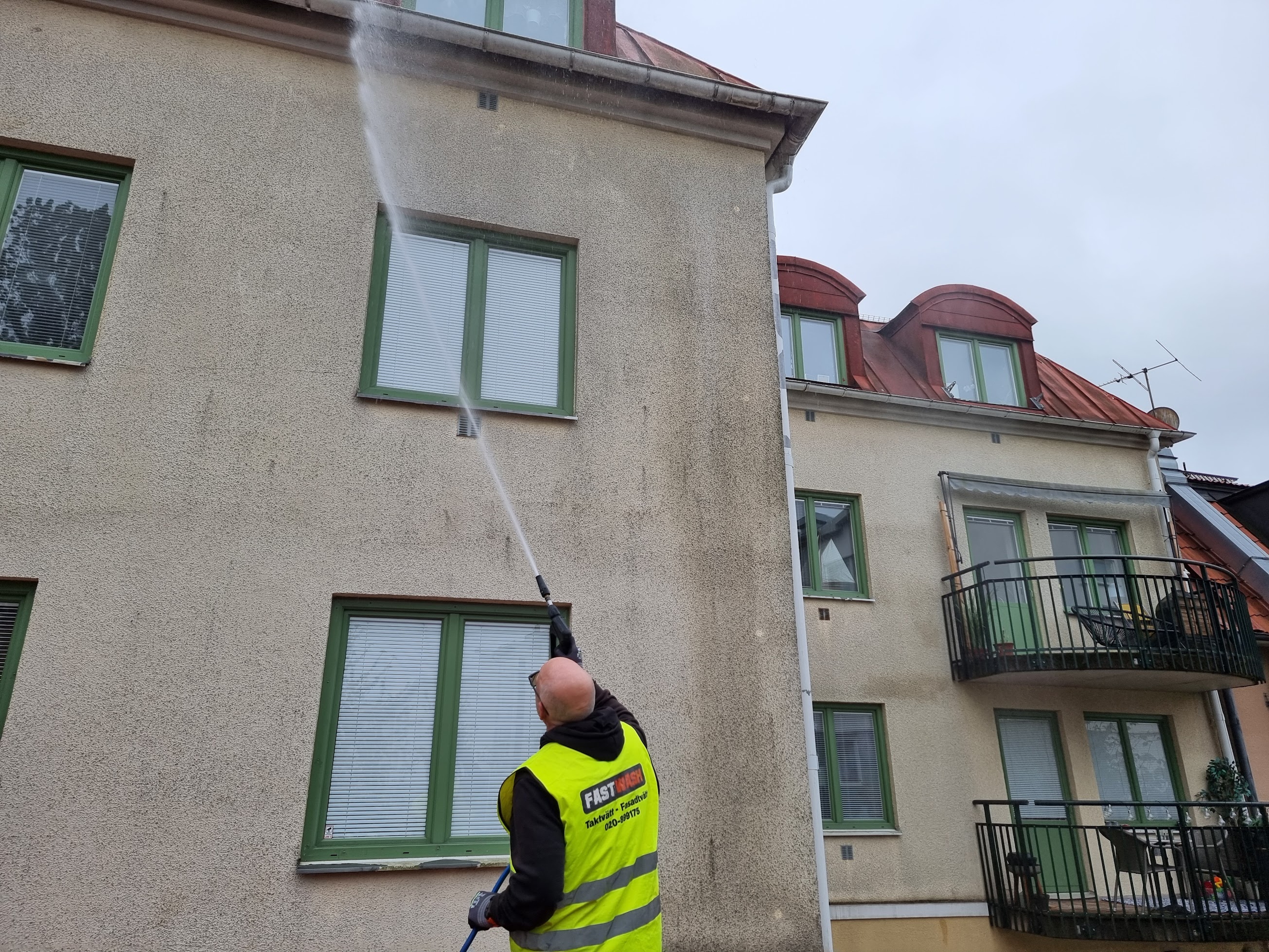 Vi på FastWash erbjuder professionell fasadtvätt speciellt anpassad för bostadsrättsföreningar. Vårt team av experter använder skonsamma metoder för att ta bort alger, mögel och smuts, vilket skyddar och bevarar fastighetens värde. Kontakta oss på 020-899175 eller via info@fastwash.se för att begära en gratis offert idag!